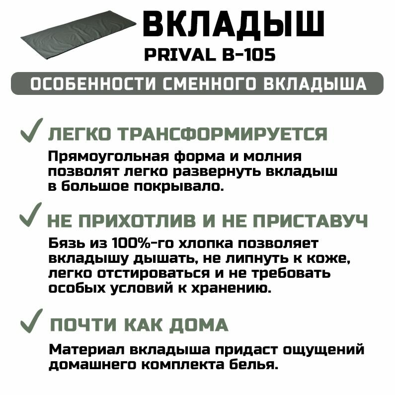 Вкладыш в спальный мешок Prival В-105, хаки информация: