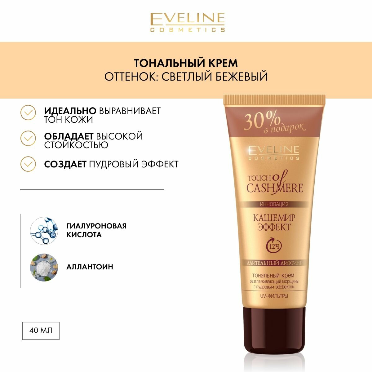 Eveline Cosmetics Тональный крем Touch of Cashmere, 40 мл/55 г, оттенок: светлый бежевый, 1 шт.