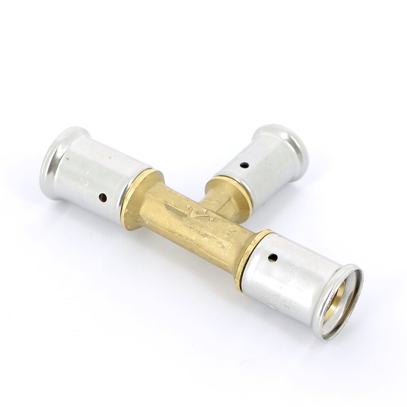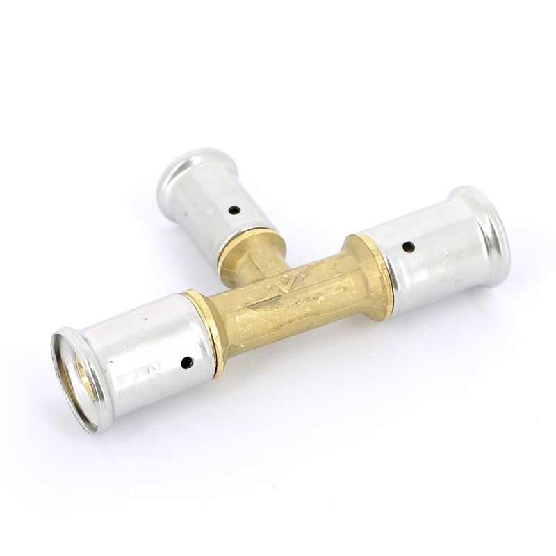 Тройник-пресс переходный сужение в центре 20х16х20, латунь, Henco 10P-201620