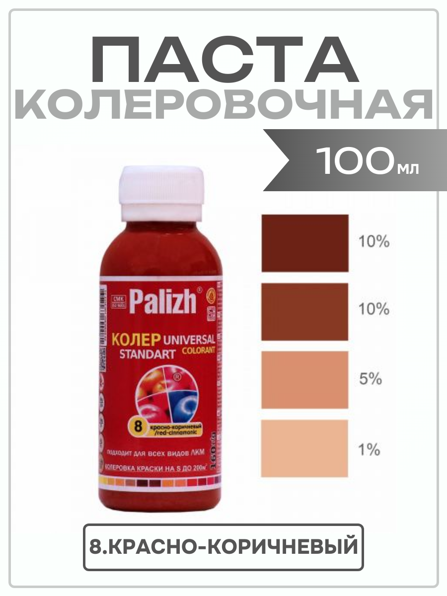 Паста колеровочная универсальная PALIZH, колер для краски, эмали, лака, красно-коричневый 100 мл 379 ₽