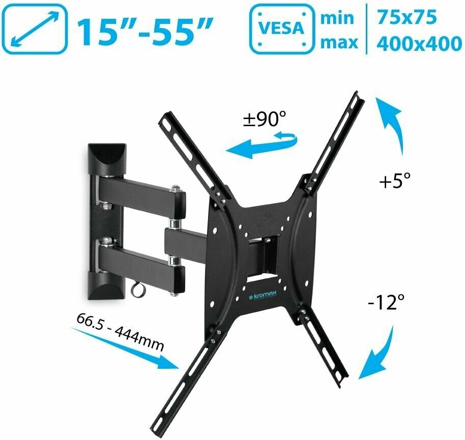 Кронштейн для телевизора Kromax OPTIMA-404, 15-55", настенный, поворотно-выдвижной и наклонный, черный (28011) 1 990 ₽