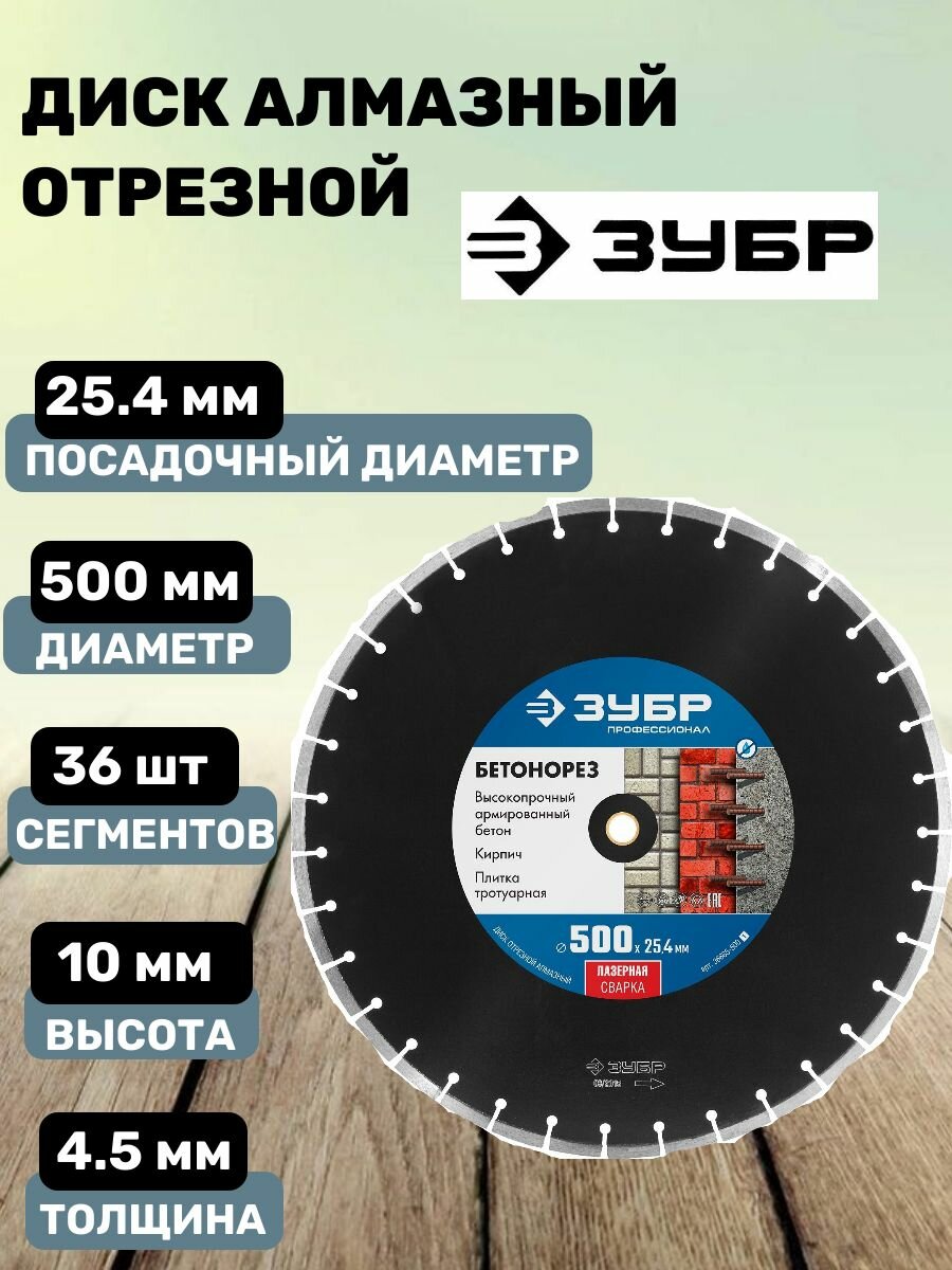 Диск алмазный отрезной по бетону и камню, бетонорез 500 мм ЗУБР Профессионал информация: