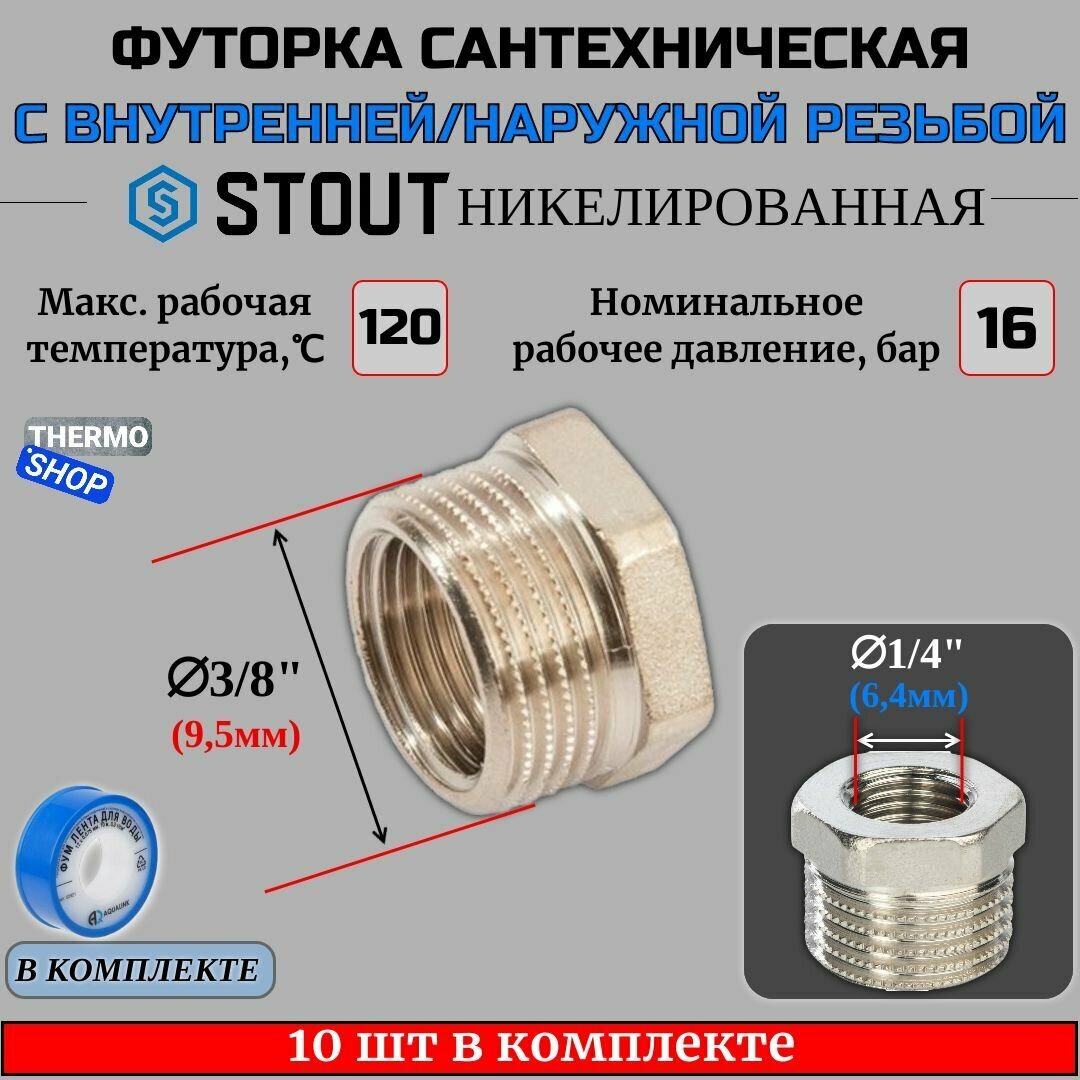 Футорка никелированная 3/8X1/4 10 шт сантехническая для труб, ФУМ лента 10 м информация: