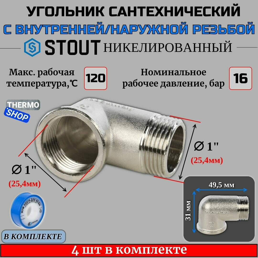Уголок 1" НВ 2 шт никелированный сантехнический (угол) STOUT ФУМ лента 10 м 1 887 ₽