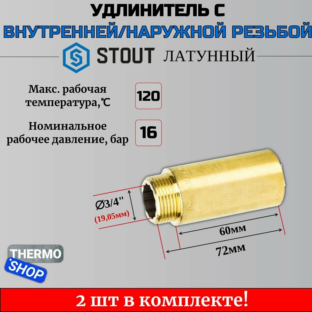 Удлинитель STOUT SFT-0001-003470 В-Н 3/4"Х70, латунь