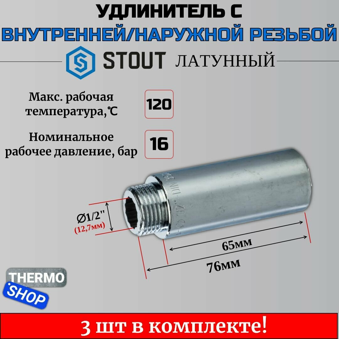 Удлинитель Stout (SFT-0002-001230) 30 мм х 1/2 ВР(г) х 1/2 НР(ш) латунный