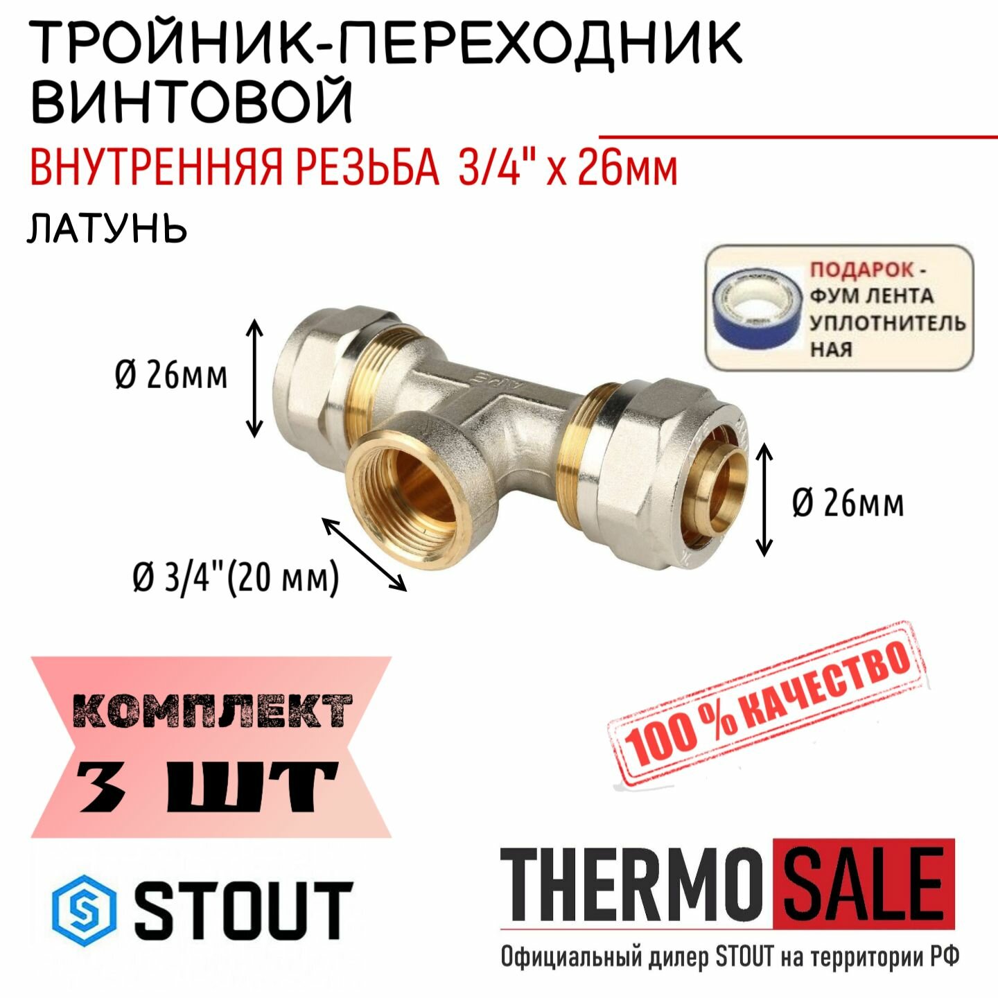 Тройник переходной винтовой Stout с внутренней резьбой 26 мм х 3/4 (SFS-0012-003426)
