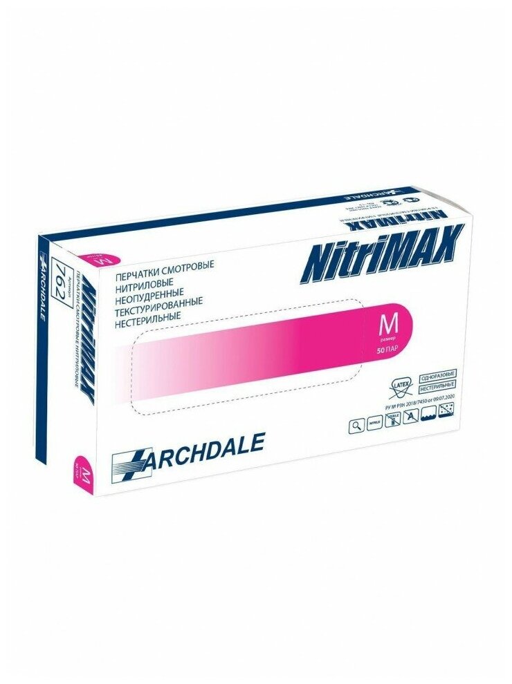 Перчатки смотровые Archdale NitriMAX, 50 пар, размер: M, цвет: фиолетовый, 1 уп.