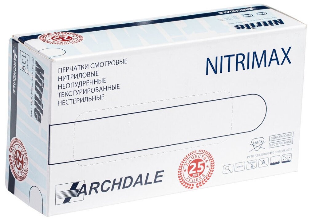 Отзывы на Перчатки смотровые Archdale NitriMAX, 50 пар, размер: XL, цвет: белый, 1 уп.