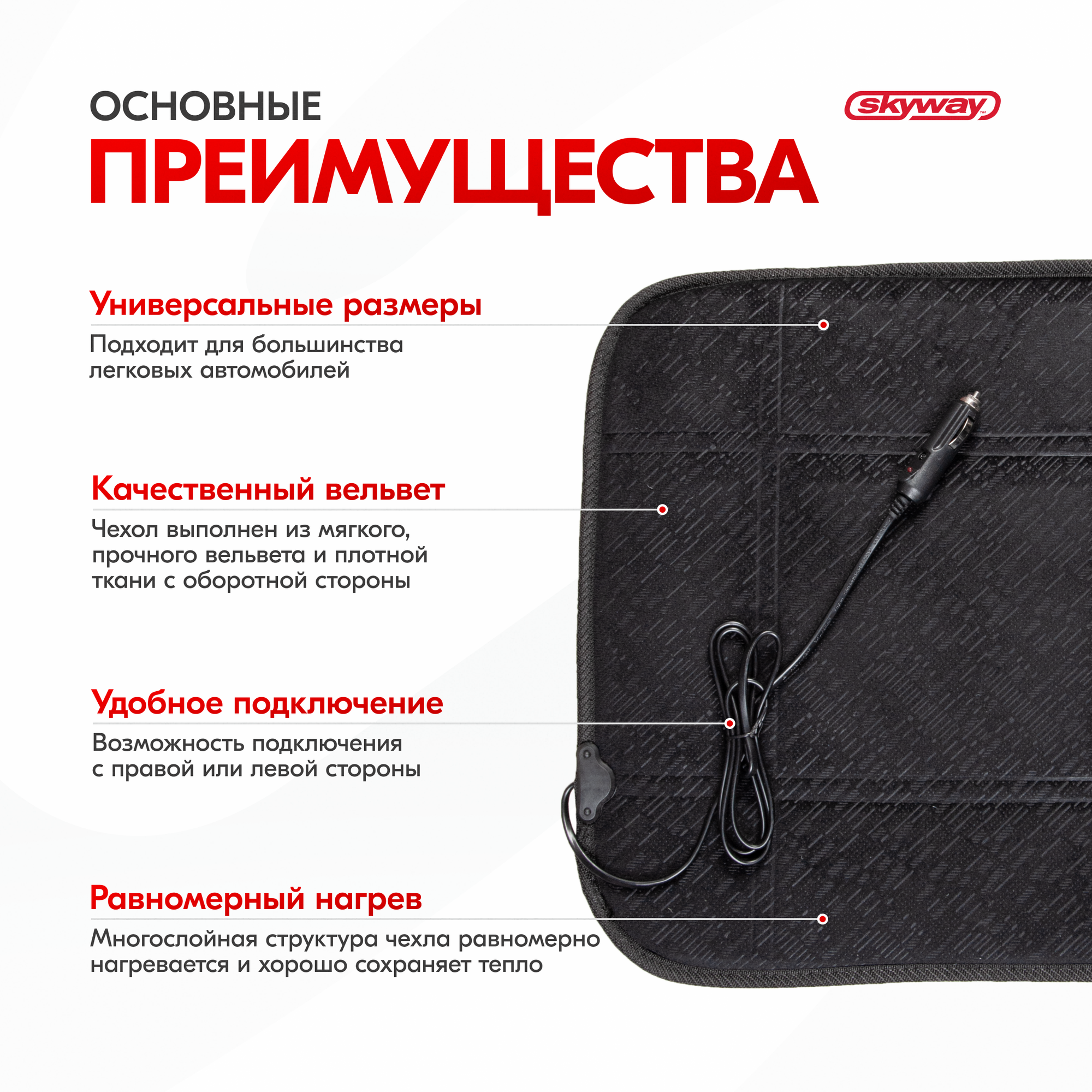 Подогрев сидений черный "SKYWAY" (без спинки 2,5А-3А, 43х43 см) (1 шт.) SKYWAY S02203003 | цена за 1 шт | минимальный заказ 1