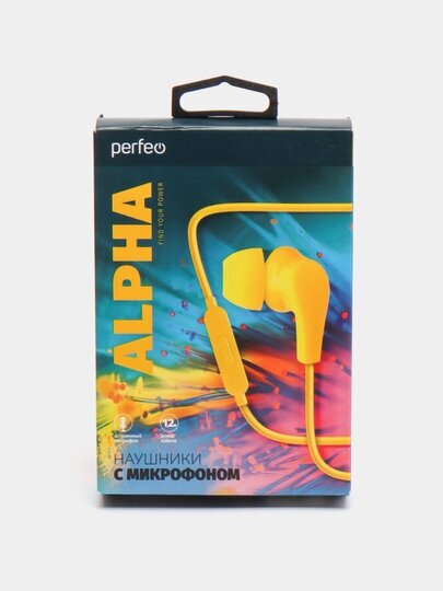 Наушники PERFEO PF_A4933 ALPHA проводные, вакуумные, 1,2м, желтый