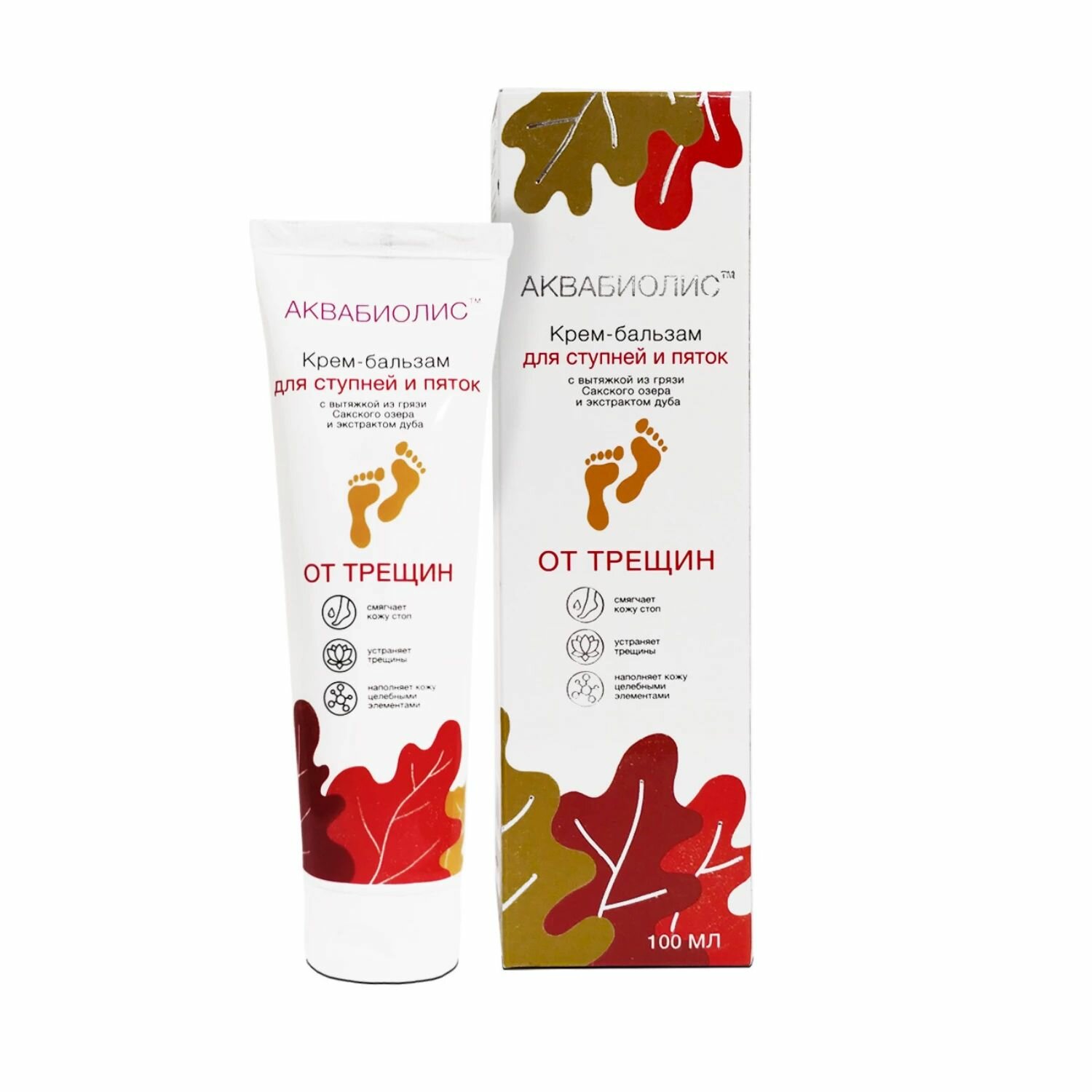 Аквабиолис Крем-бальзам для ступней и пяток "От трещин" на основе целебной грязи сакского озера, 100 мл