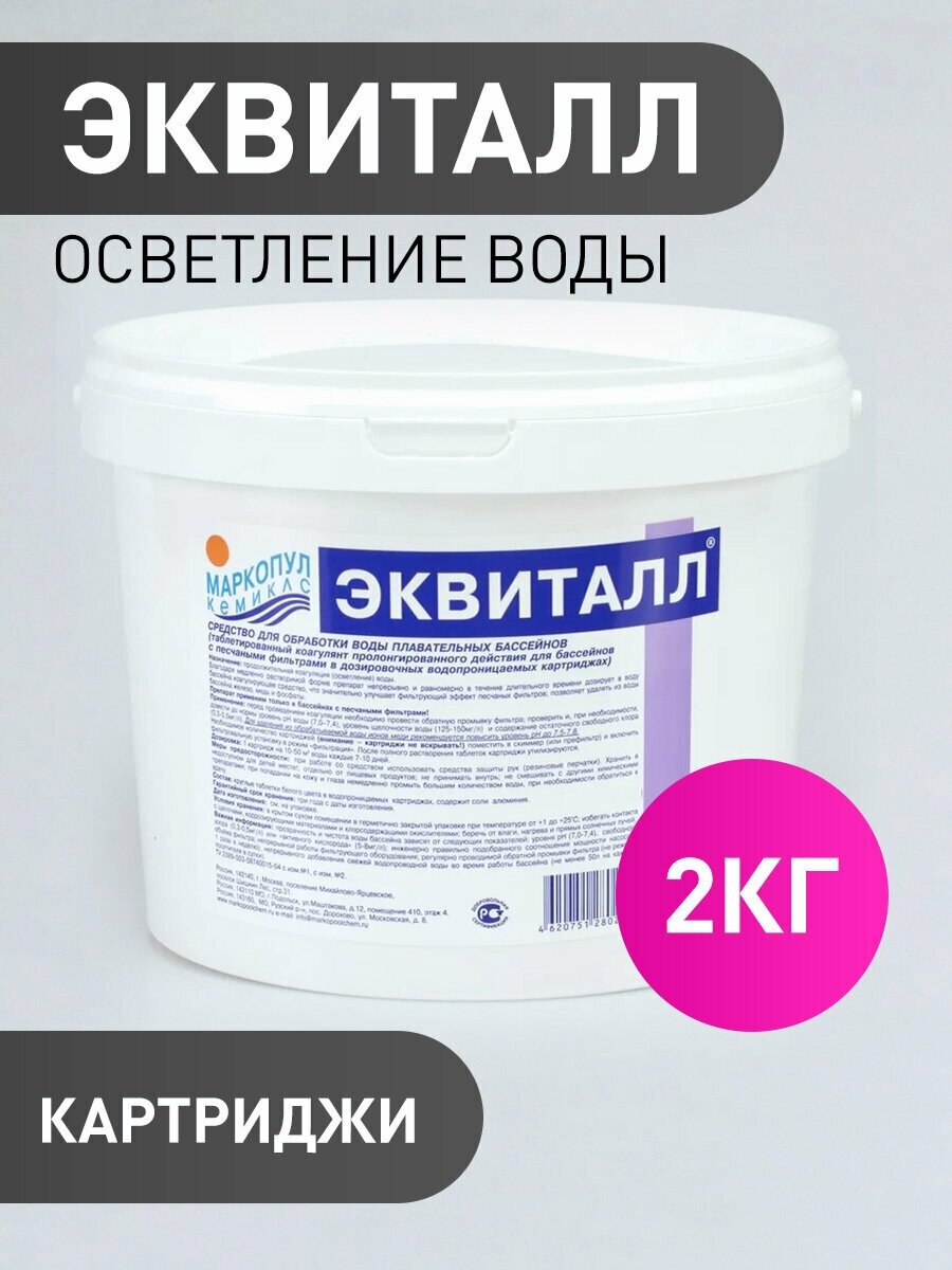 Эквиталл (2кг) коагулянт для бассейна - таблетки в картридже медленного действия. Маркопул Кемиклс