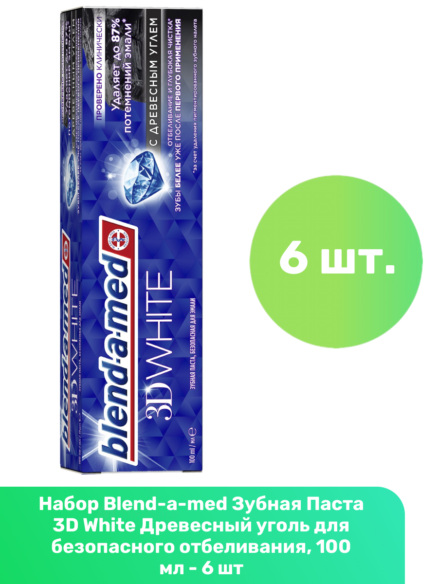 10 цен на Blend-a-med Зубная паста 3D White, Отбеливание и глубокая чистка, Древесный Уголь, 100 мл, 6 шт