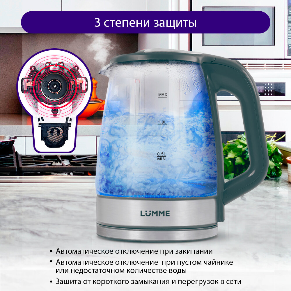 Электрический чайник LUMME LU-KT4115A черный стеклянный с подсветкой 2 л