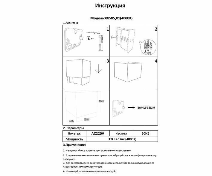 08585,01(4000K) Уличный настенный светодиодный светильник KINK Light, Куб 2 400 ₽