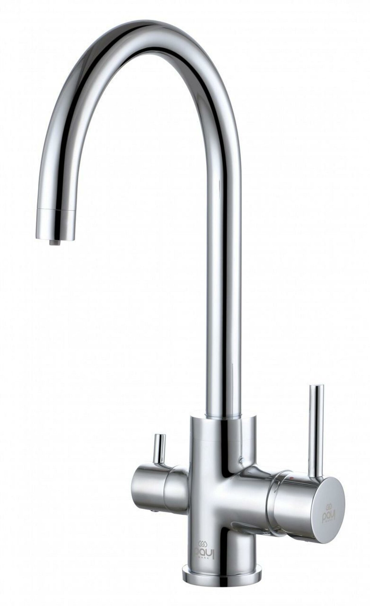 10 цен на Кухонный смеситель Paulmark ESSEN, подключение к фильтру питьевой воды с отдельным каналом и выпуском, высокий поворотный излив, латунь, на мойку / столешницу, хром, Es213211-CR