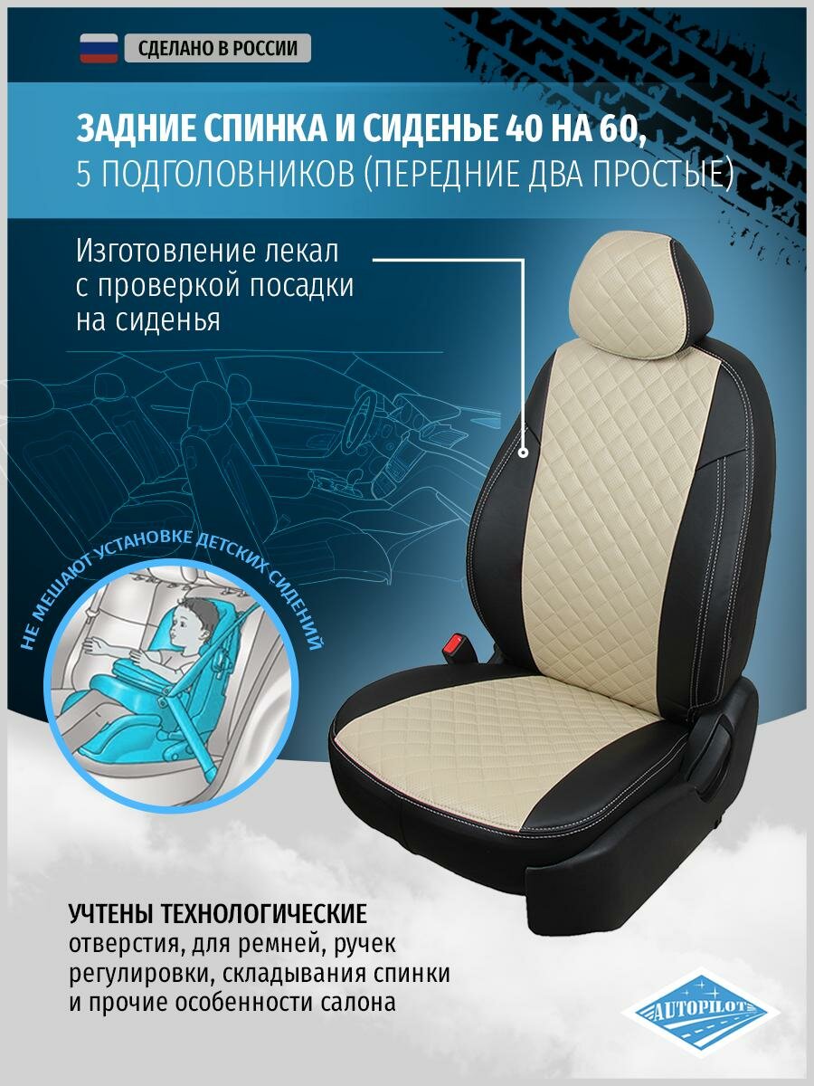 Комплект чехлов АВТОПИЛОТ из экокожи для Mitsubishi Lancer 10 седан, ромб