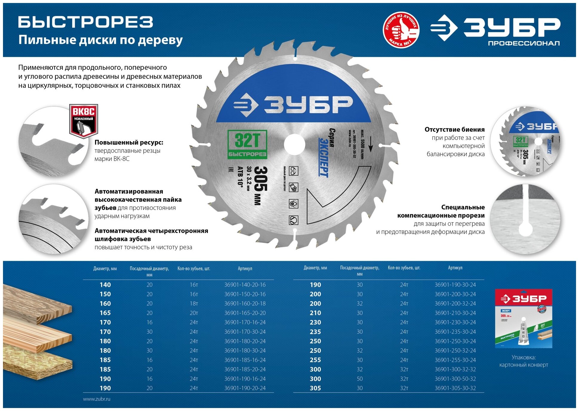 10 цен на ЗУБР Быстрорез 255 x 30мм 24Т, диск пильный по дереву