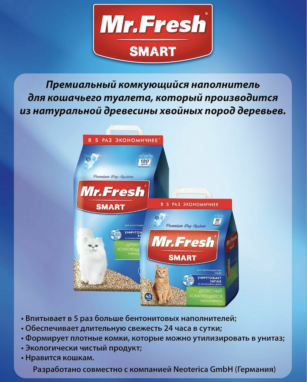 Mr.Fresh Smart (Neoterica) древесный комкующийся наполнитель для короткошерстных кошек, 4.5 л информация: