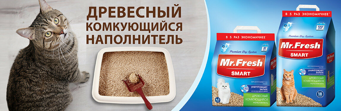 Отзывы на Mr.Fresh Smart (Neoterica) древесный комкующийся наполнитель для короткошерстных кошек, 4.5 л