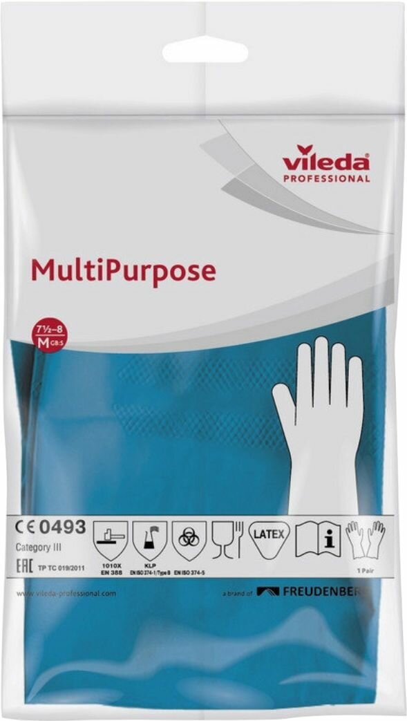Перчатки латексные Vileda MultiPurpose, синие, размер 8 (М), 1 пара (100753)