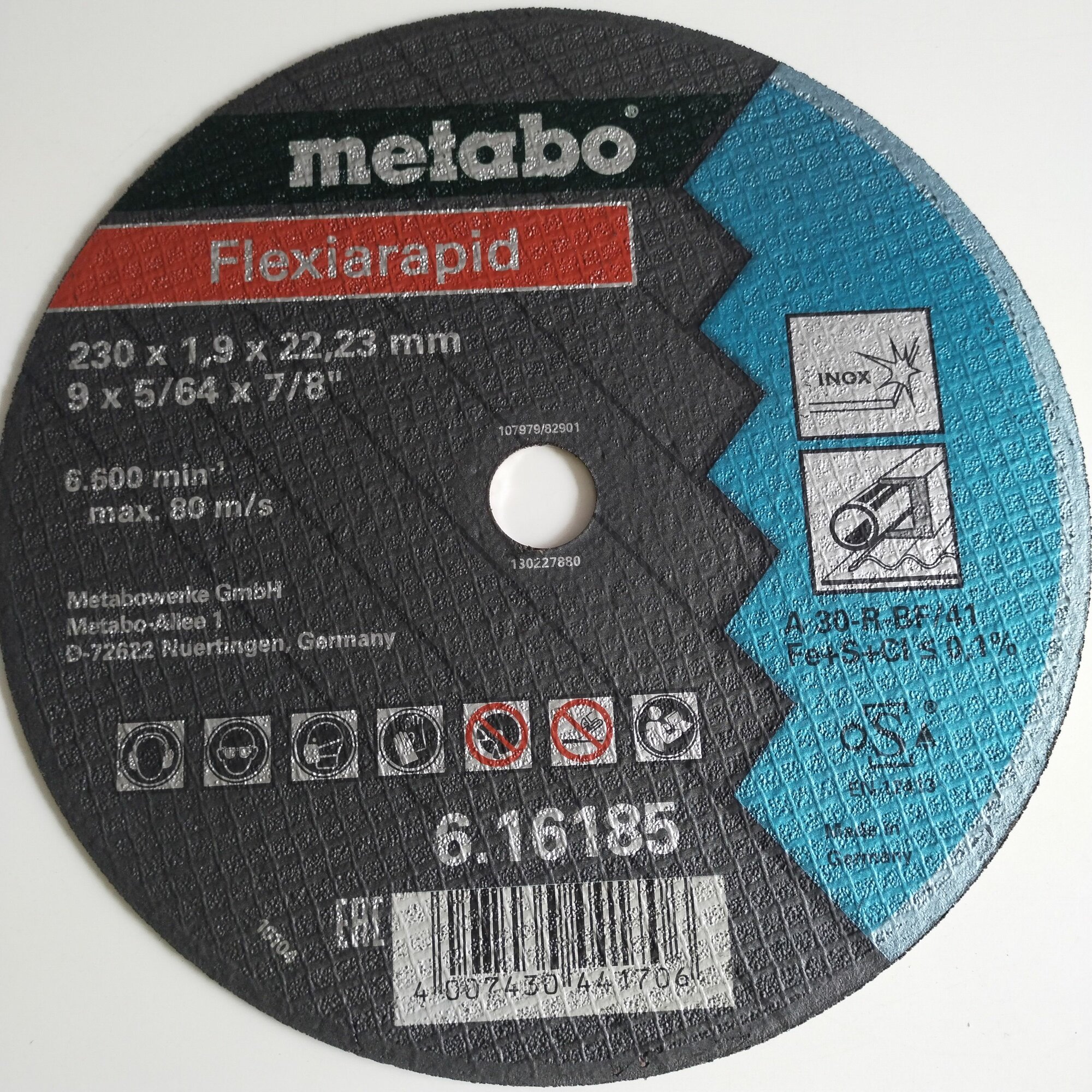 Отзывы на Круг/диск отрезной по нержавеющей стали FLEXIARAPID 230X1,9X22,23, INOX, TF 41 (616185000)