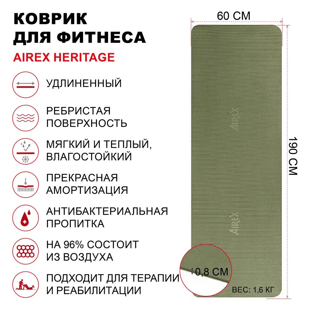 Коврик для фитнеса и растяжки AIREX Heritage, 190х60х0,8 см, цвет оливковый информация: