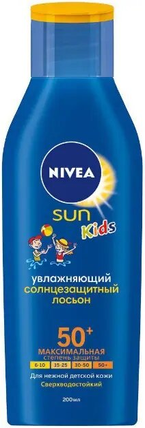 Солнцезащитный лосьон для детей Nivea Защита и забота сверхводостойкий, SPF 50+, 200 мл информация: