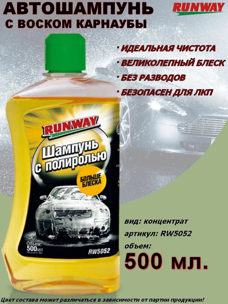 10 цен на Автошампунь, Runway, 5052 RW, с полиролем, 500 мл.