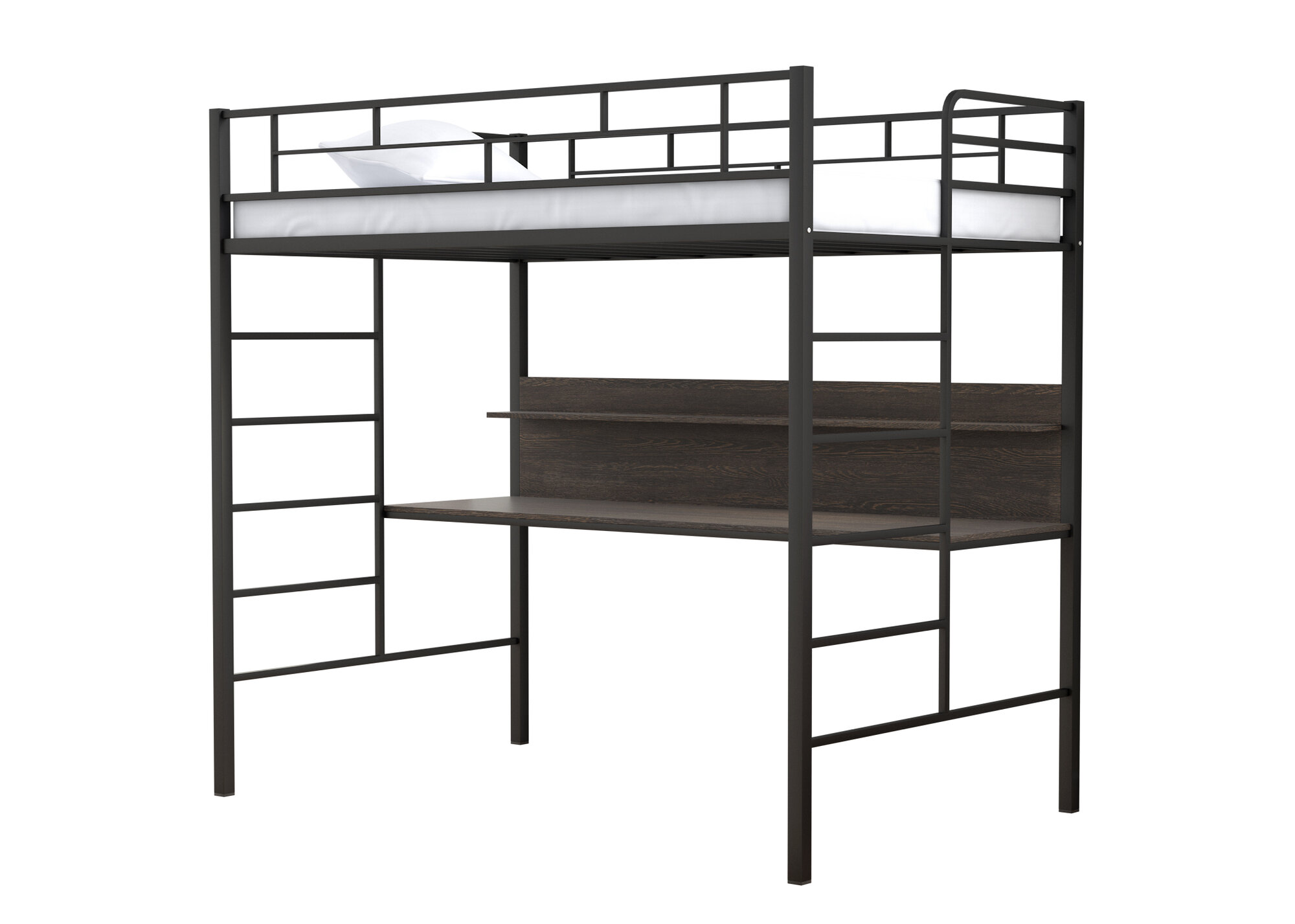 10 цен на Кровать чердак "Амстердам-120" Черная со столом Венге/ детская/ 120х190 см/ двухъярусная кровать с рабочей зоной/ для детей и взрослых/ металлическая/ двухэтажная/ взрослая/высокая