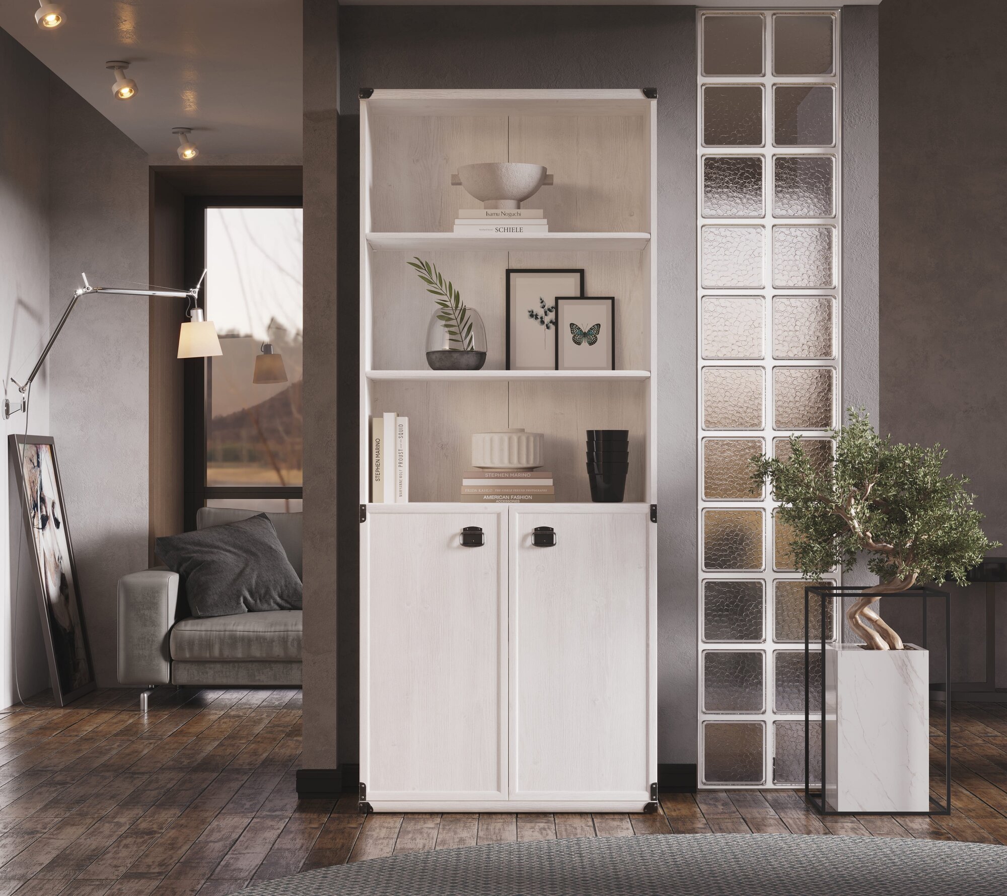 Стеллаж Нонтон Челси белый глянец / белый 60.2х38.6х179.6 см