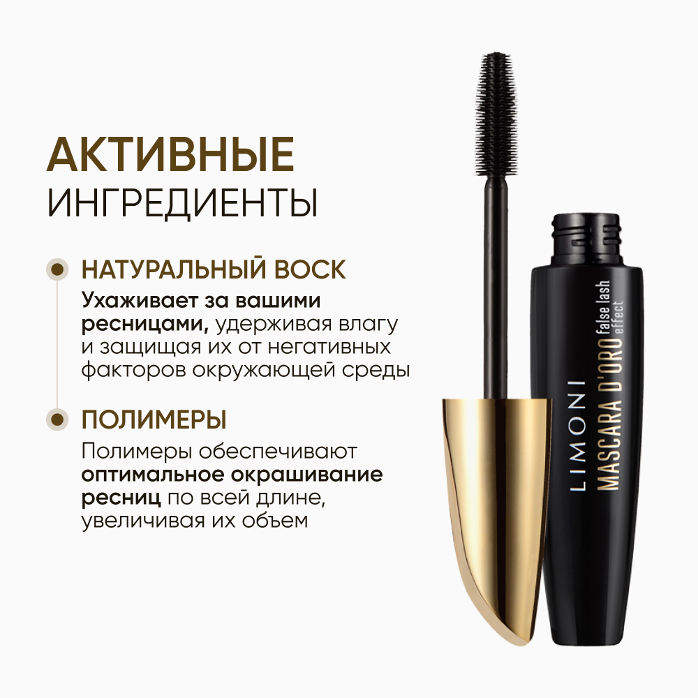 Тушь для ресниц эффект накладных ресниц LIMONI Mascara D'oro 01, black / объём 12 мл информация: