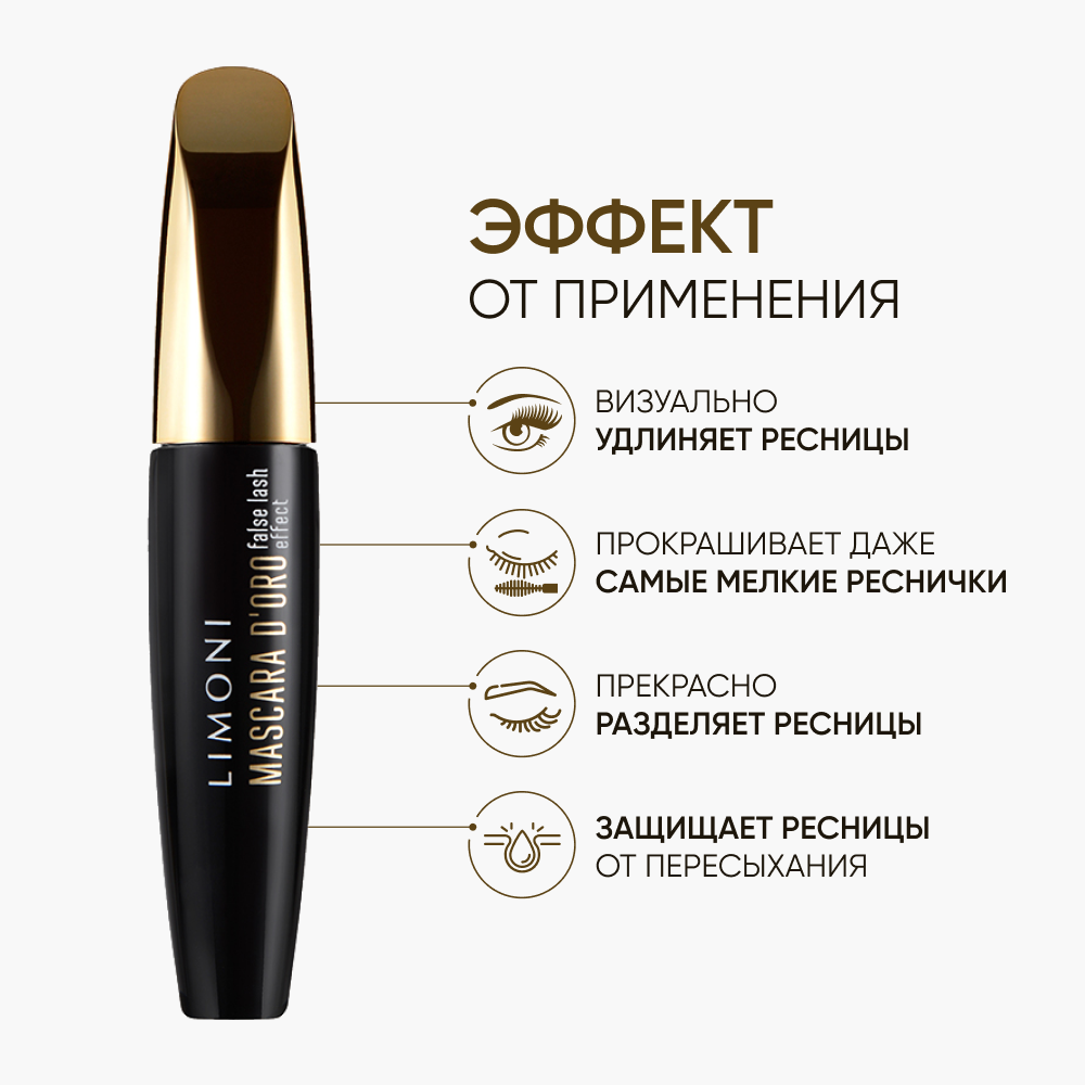 10 цен на Тушь для ресниц эффект накладных ресниц LIMONI Mascara D'oro 01, black / объём 12 мл