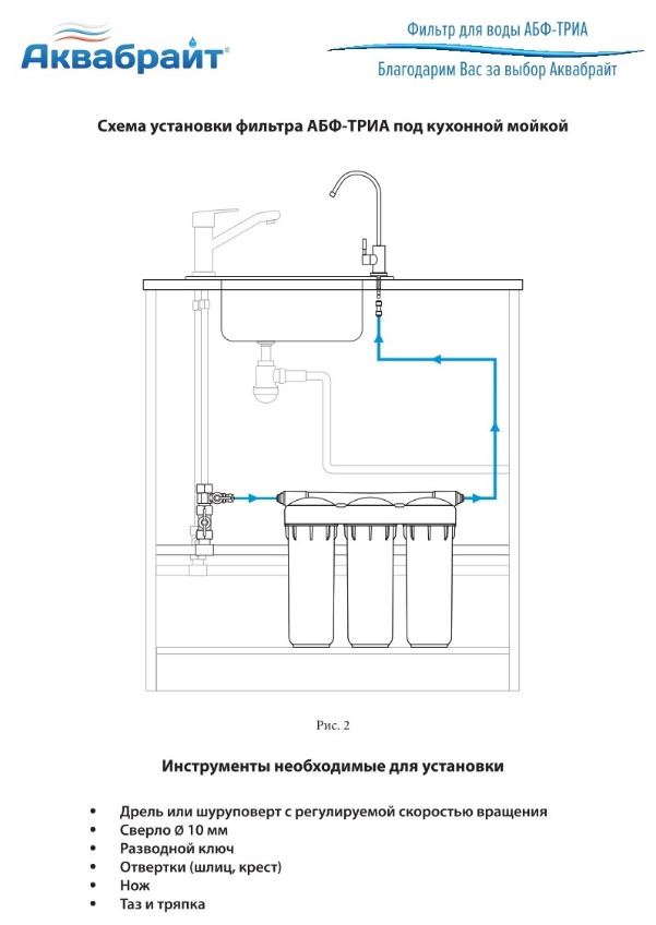 Трехступенчатый фильтр под мойку Аквабрайт АБФ-ТРИА-УМЯГЧЕНИЕ информация: