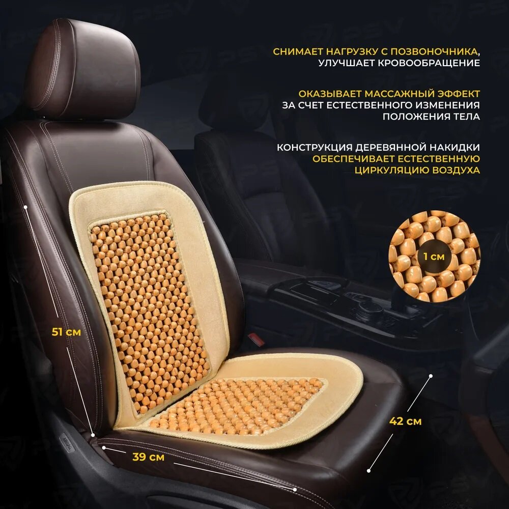 PSV 132723 Накидка на сиденье массажная деревянная (шарики) бежевая PSV