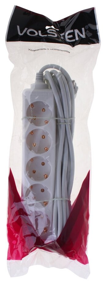 Отзывы на Удлинитель сетевой 5м 10А 3500Вт 5 гнезд с заземлением белый Volsten S 5x5-Z