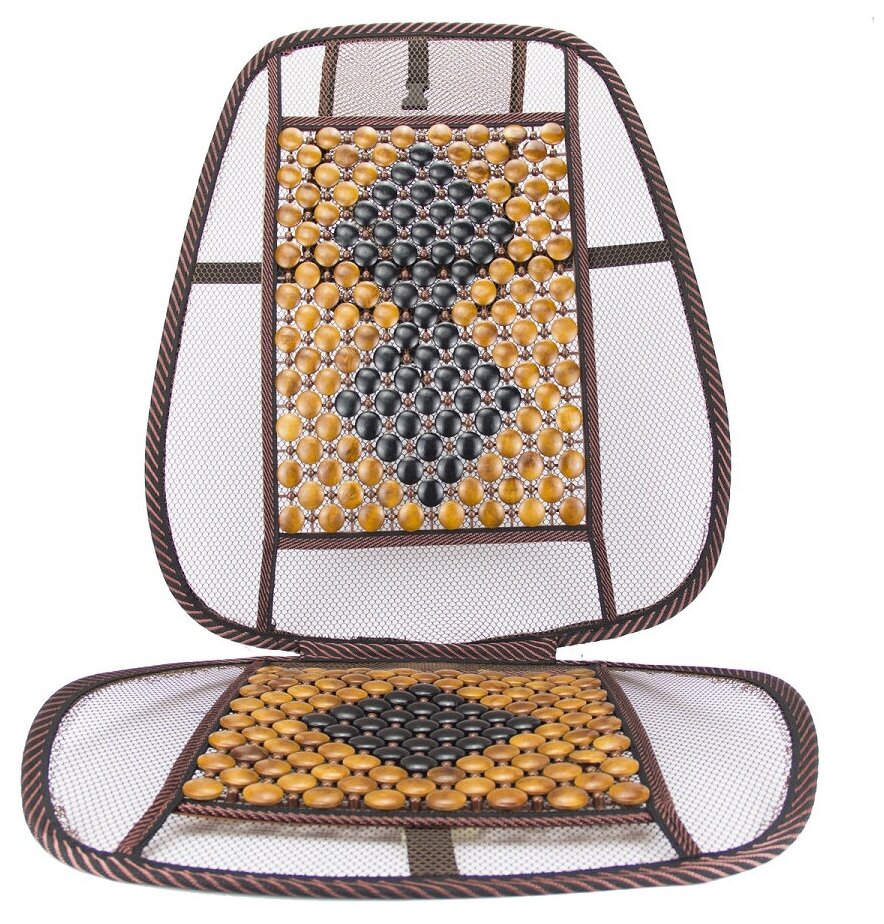 Накидка на сидение деревянная массажная с сеткой и подголовником, цвет черный/орех (132 x 52см)