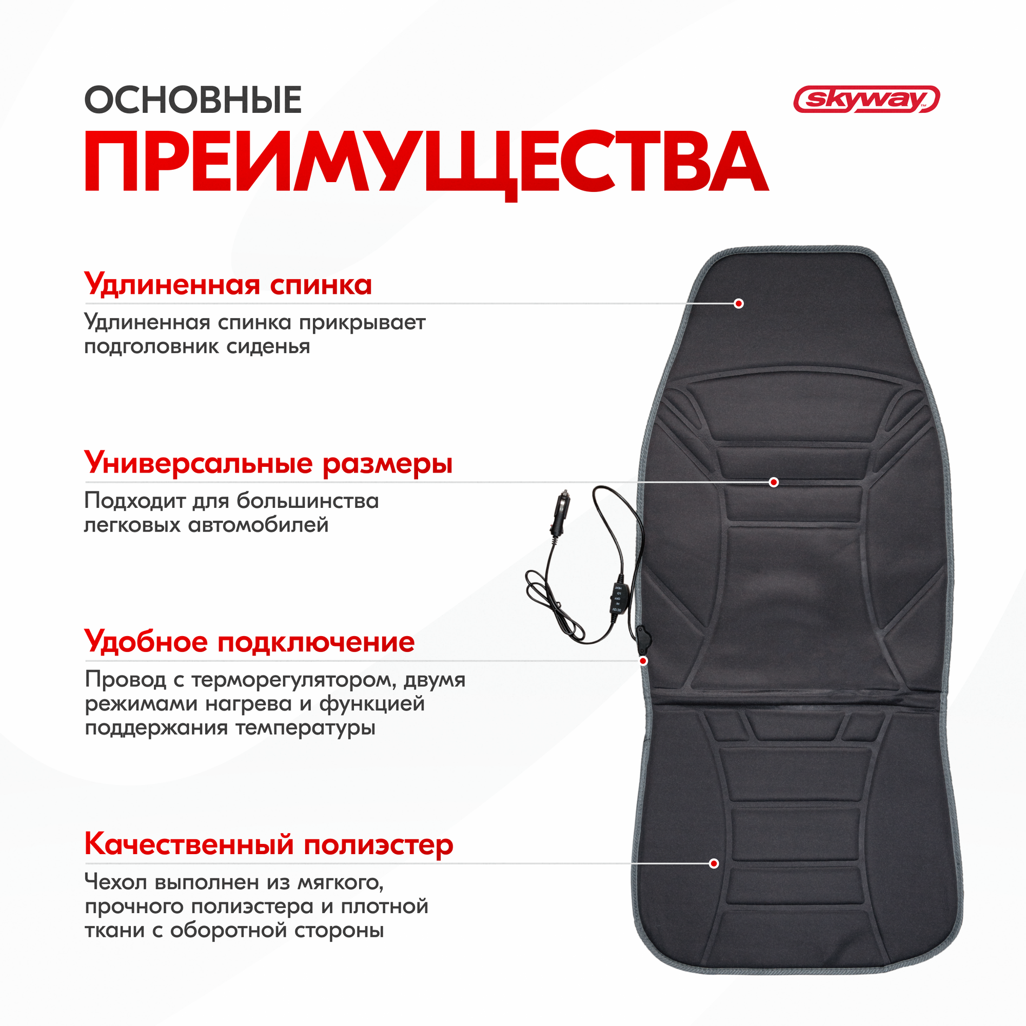 Накидка на сиденье с подогревом 12V с терморегулятором черная, SKYWAY S02201002 (1 шт.) 2 630 ₽
