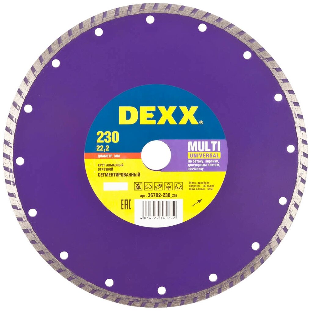 Диск алмазный отрезной Dexx Multi Universal 230 мм сегментированный по бетону, кирпичу, камню 36702- .