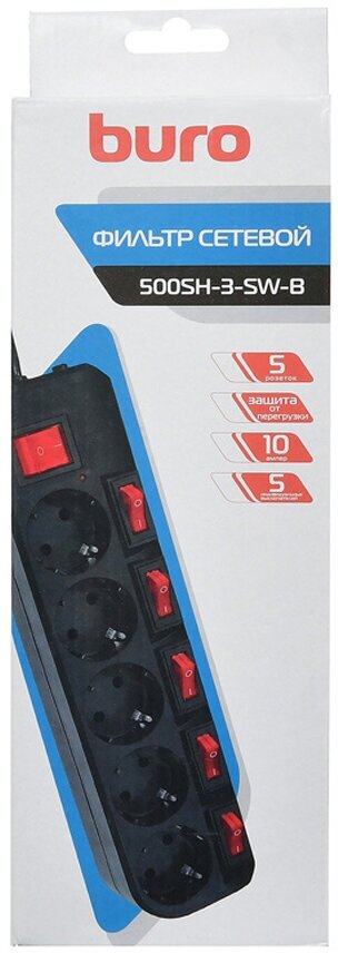 Фильтр питания Buro 500SH-5-SW-B 5м (5 розеток с выключателями) черный