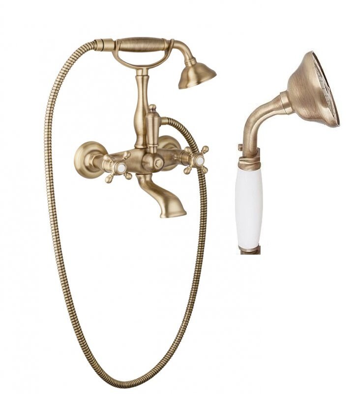 Cezares Смеситель Cezares GOLF-VD-02-Bi для ванны, с ручным душем, бронза/ручки белые