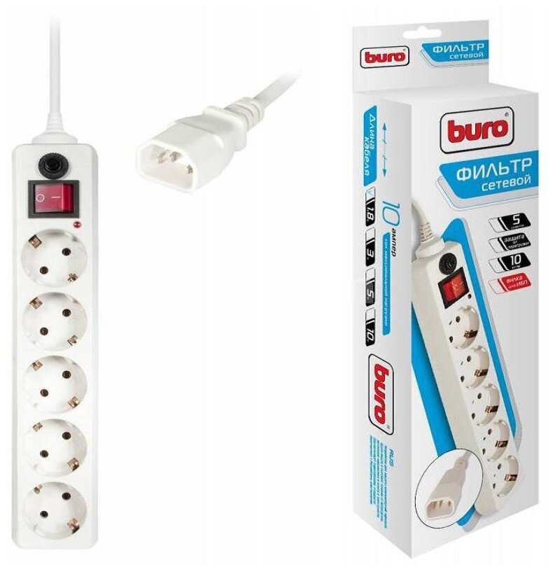 Buro Сетевые фильтры Сетевой фильтр, 5 розеток, 1.8 метра, 500SH-1.8-UPS-B черный коробка