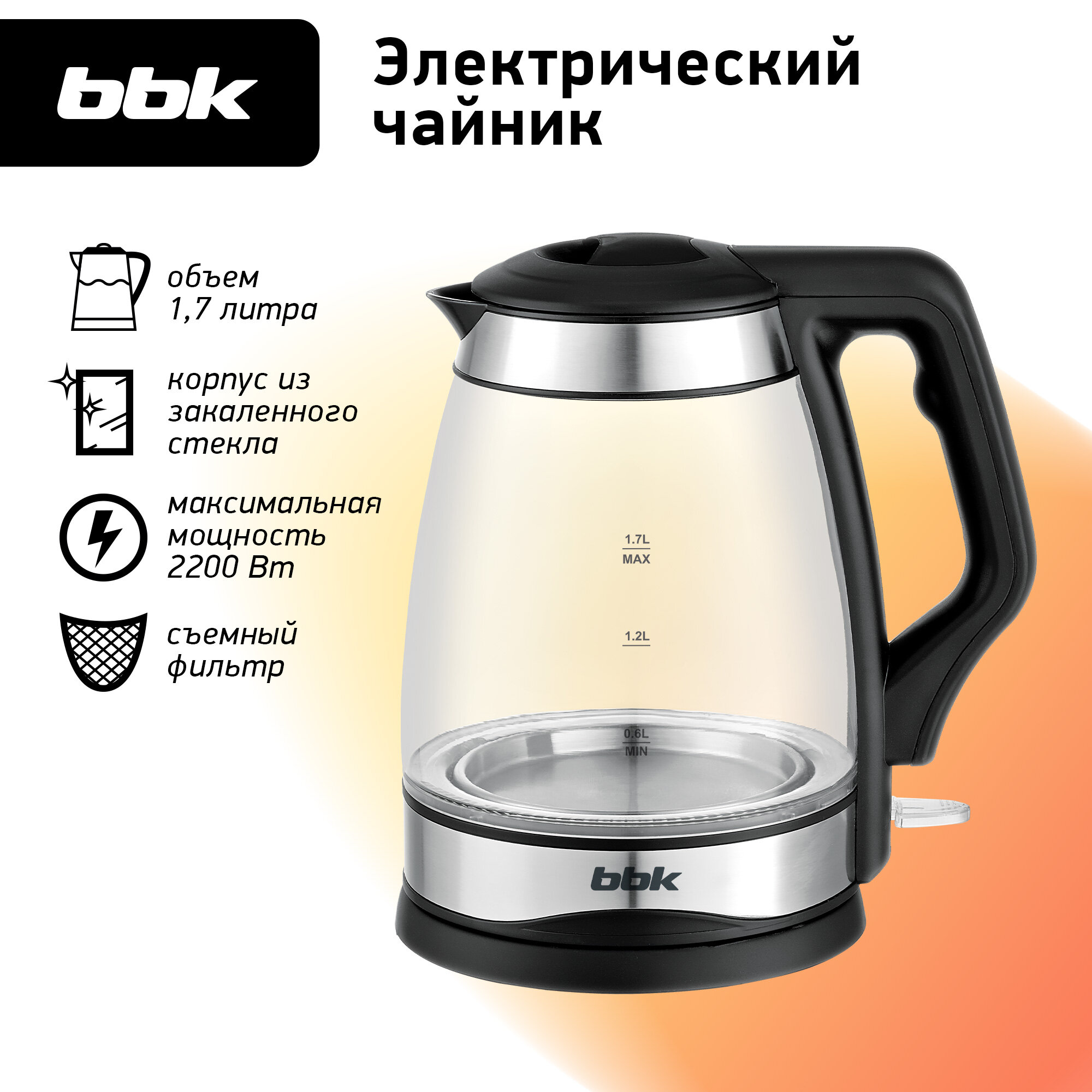 Чайник электрический BBK EK1728G 2200 Вт чёрный 1.7 л стекло 1 762 ₽