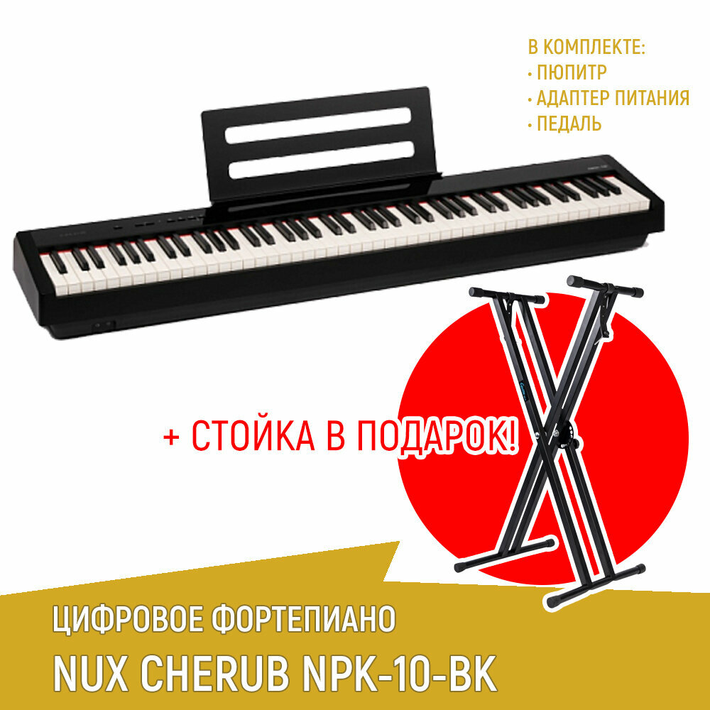 10 цен на Цифровое пианино NUX NPK-10-BK, черное + cтойка Х-образная