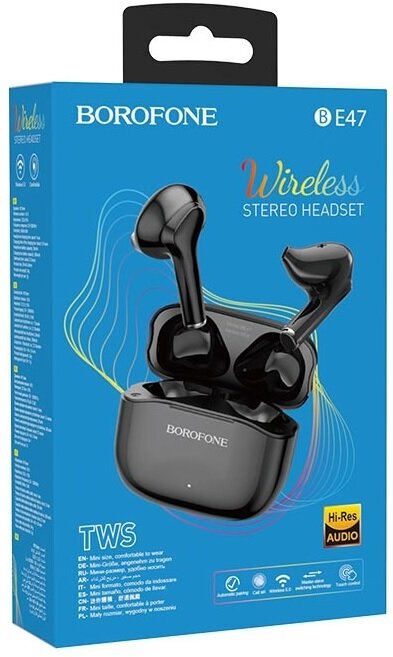 Наушники беспроводные (BT ver.5.0) BOROFONE BE47 вкладыши с микрофоном, кейс 260mAh, черный (90)