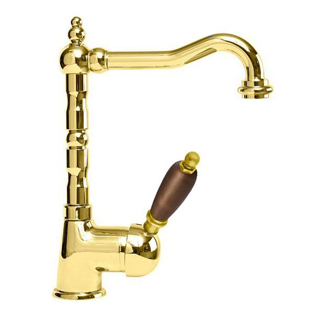 ELITE-LSM2-03/24-Nc Смеситель на раковину однорычажный с донным клапаном, золото, ручка орех