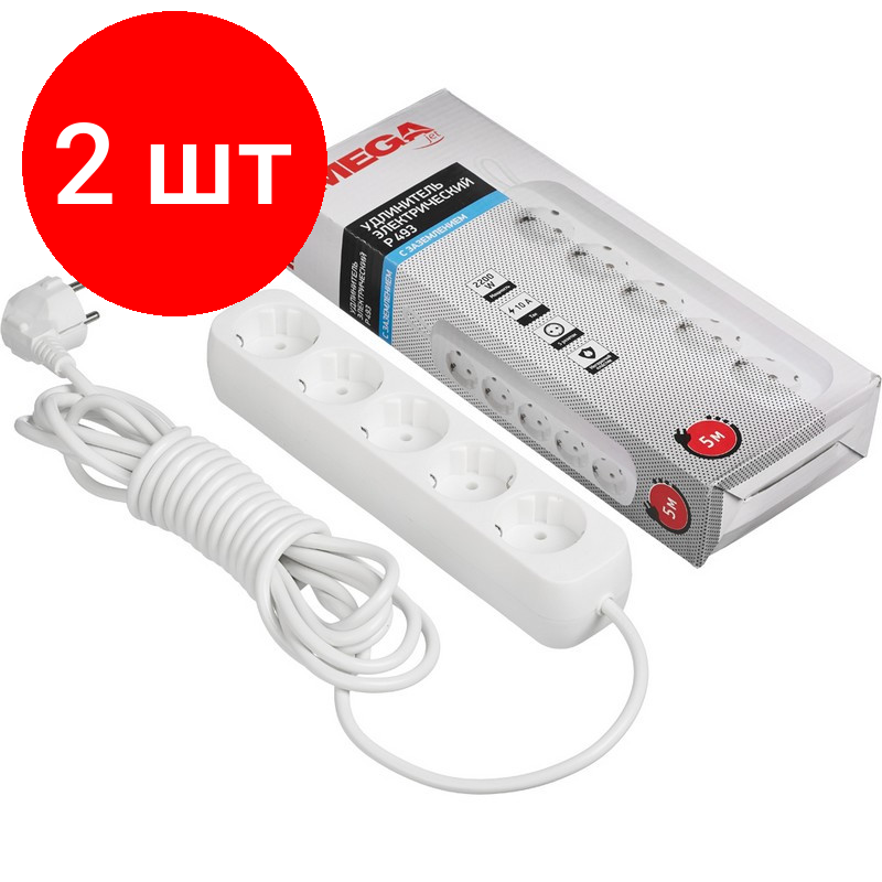 10 цен на Комплект 2 штук, Сетевой фильтр Promega jet 5/5м с зазем,10А,2200 Вт,автомат предохр,белый