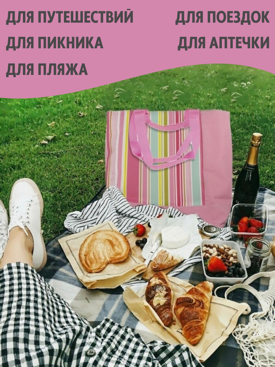 Термосумка для путешествий Homy Mood/ Пляжная сумка/ Сумка-холодильник в дорогу/ цвет розовый/31х16,5х35см, объем 13 литров 710 ₽