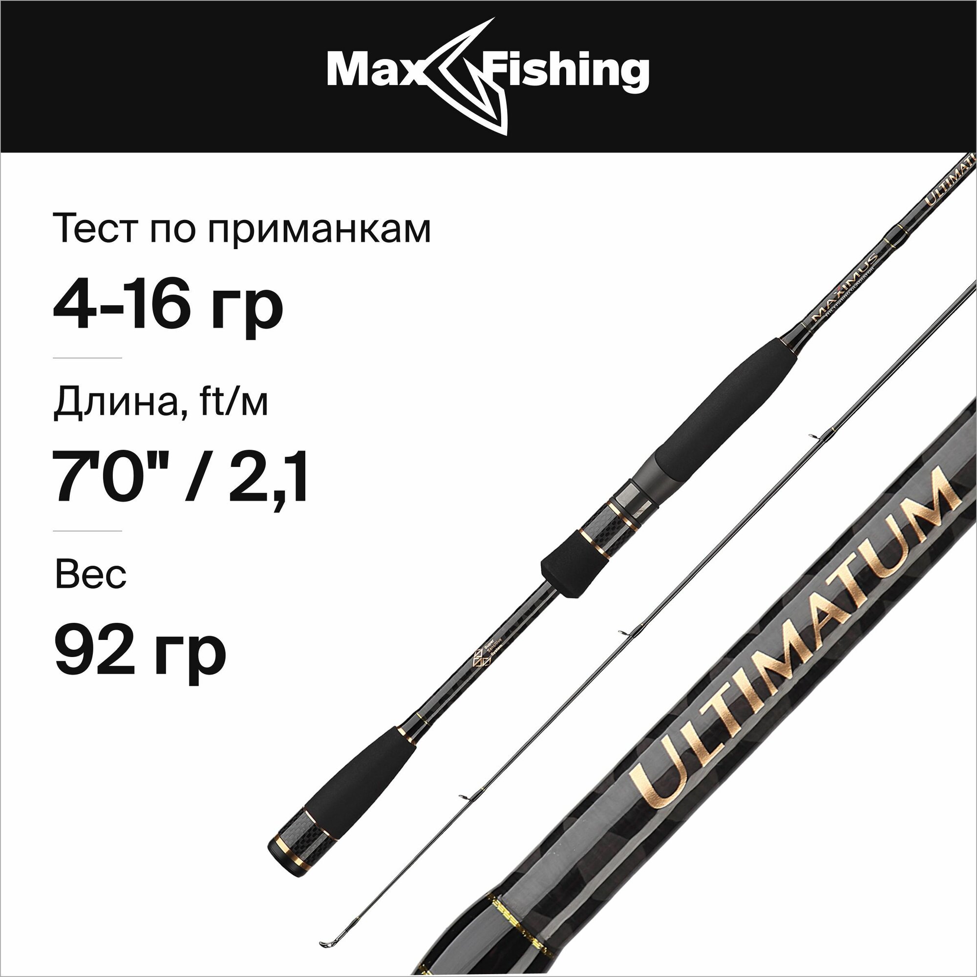 Спиннинг для рыбалки Maximus Ultimatum 21L 4-16гр, 210 см, для ловли окуня, щуки, судака, жереха / удилище спиннинговое информация: